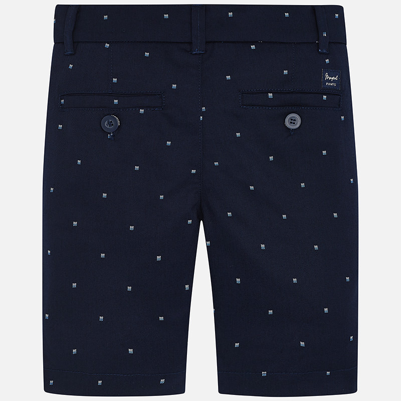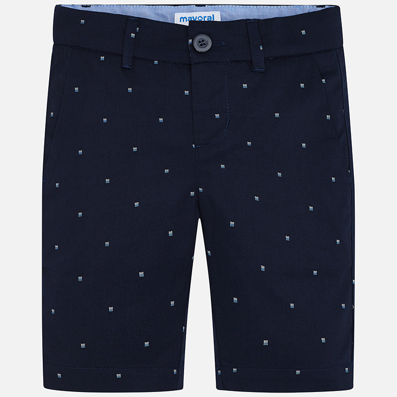 Pantalón de tipo bermuda para niño. Cintura con goma elástica y cierre con botón. Suave tejido de algodón elástico. Bolsillos funcionales en el delantero y en la parte trasera de la prenda. Diseño estampado.
