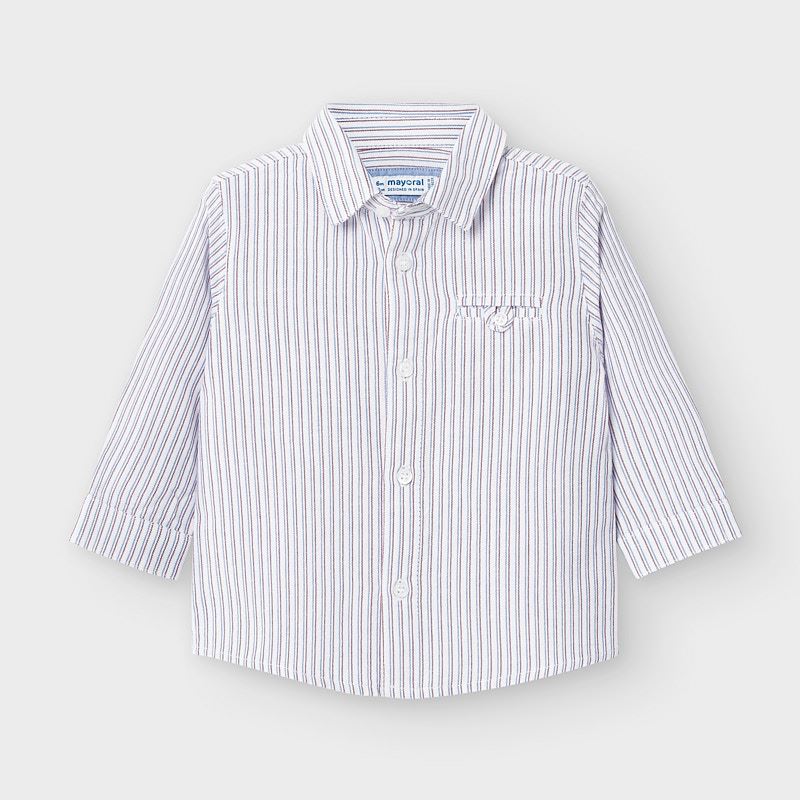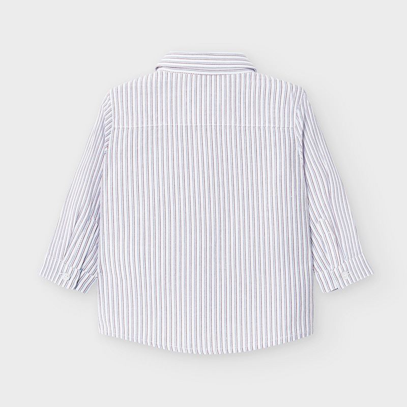 Camisa manga larga rayas. Camisa de manga larga para bebé niño de 12 a 36 meses, con puños abotonados. Cuello camisero. Tejido 100% algodón. Motivo de rayas.