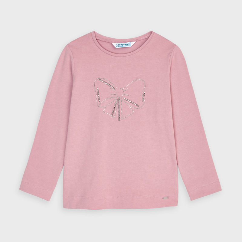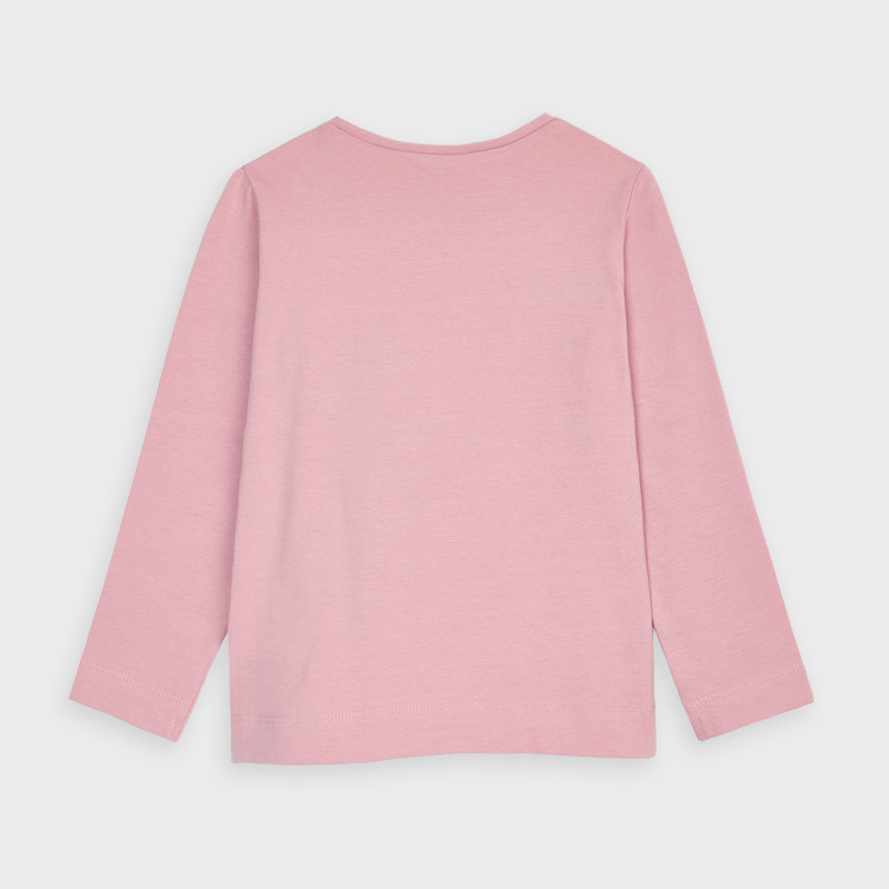 Camiseta de manga larga para niña de 2 a 9 años. Cuello redondo. Modelo de nuestra colección de prendas básicas con diseño clásico confeccionado con algodón orgánico, ideales para completar cualquier conjunto. Suave tejido de algodón elástico. Elementos de adorno: aplique decorativo, strass.