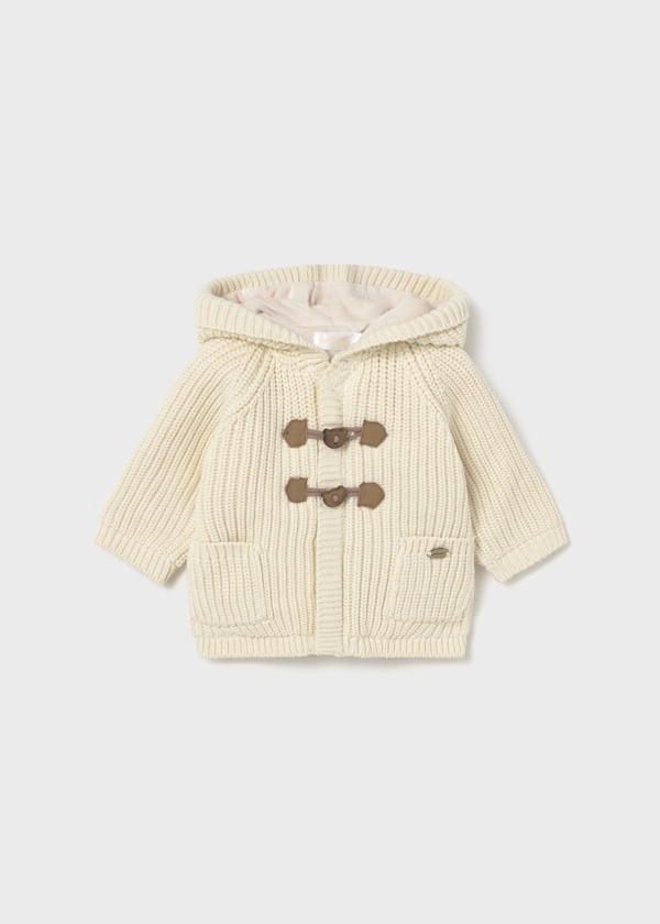 Cárdigan de manga larga para recién nacido. Cuello con capucha. Cierre con cremallera delantera y alamares. Tejido de punto tricotosa de tacto suave y agradable. Bolsillos funcionales en la parte delantera. Elementos de adorno: pompón. Entre 1-18 meses.