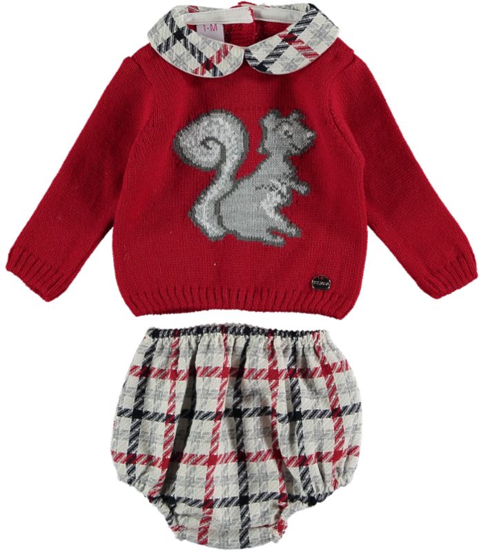 Conjunto de dos piezas formado por jersey y pantalón corto con estampado de ardilla.