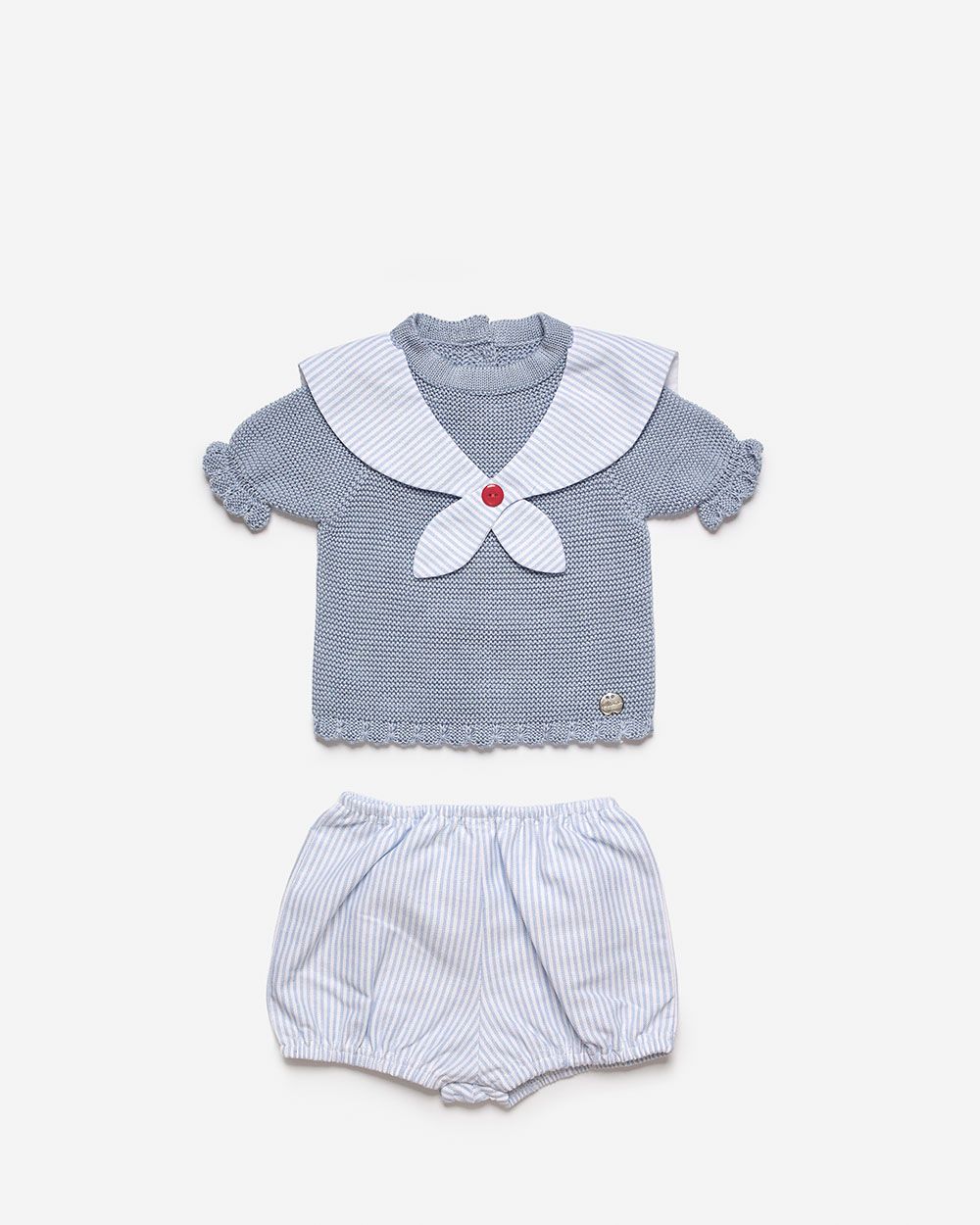 Conjunto pantalón rayado babero entre 1-24 meses.