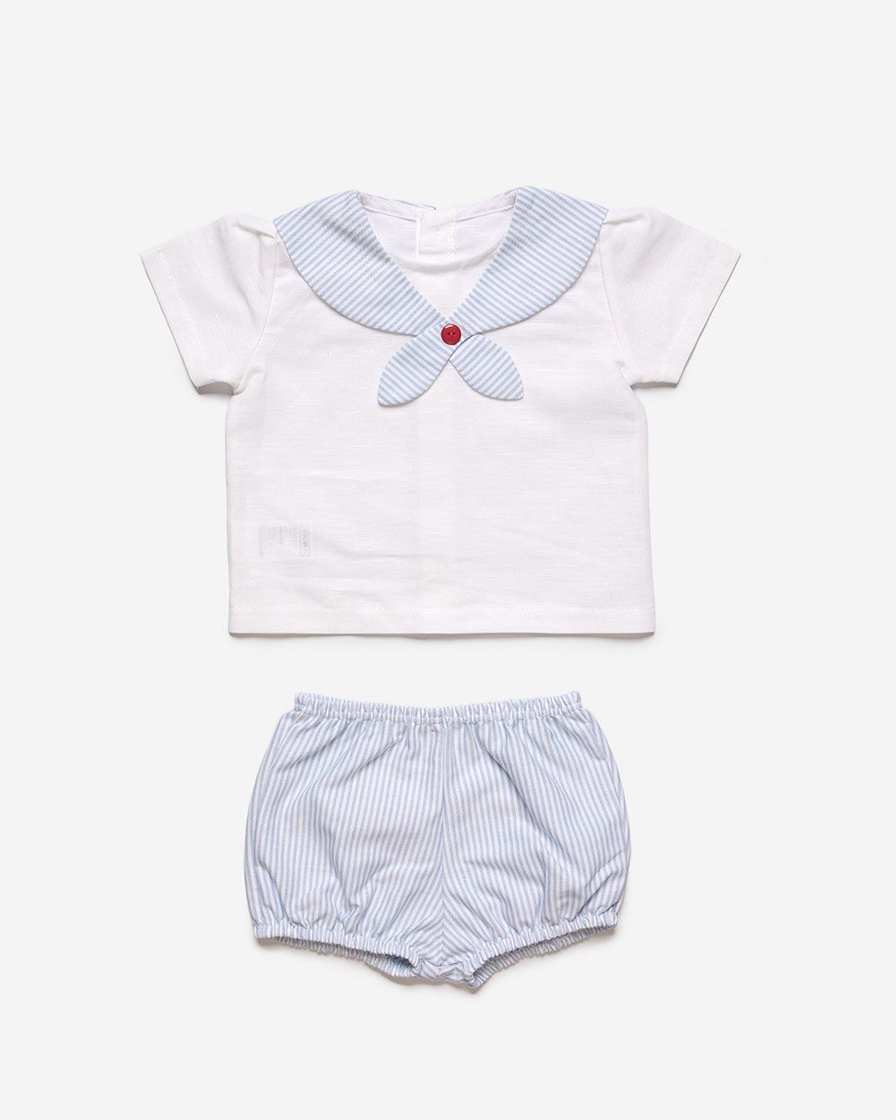 Conjunto camisa niño babero rayado entre 6-48 meses.