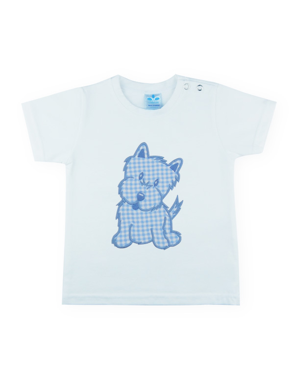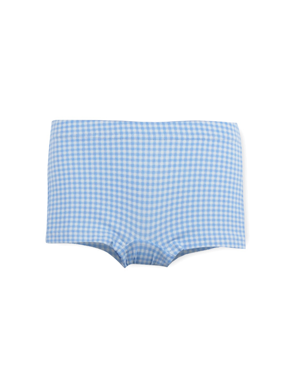 Conjunto baño de camiseta perrito y boxer en cuadros vichy celeste.