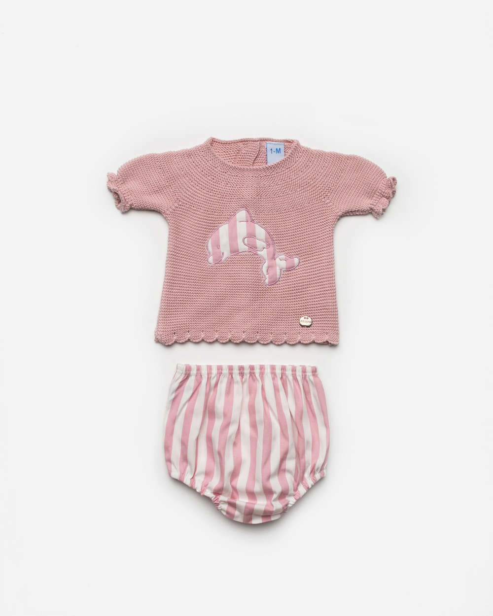 Conjunto braguita rayada y jersey manguita corta.