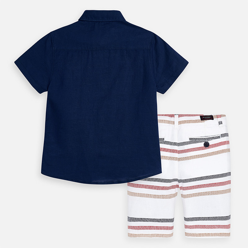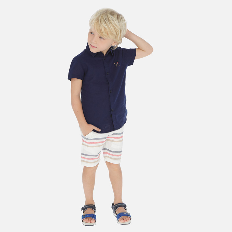 Conjunto de camisa y bermudas coordinadas para niño. Tejido de lino de aspecto fresco y actual.