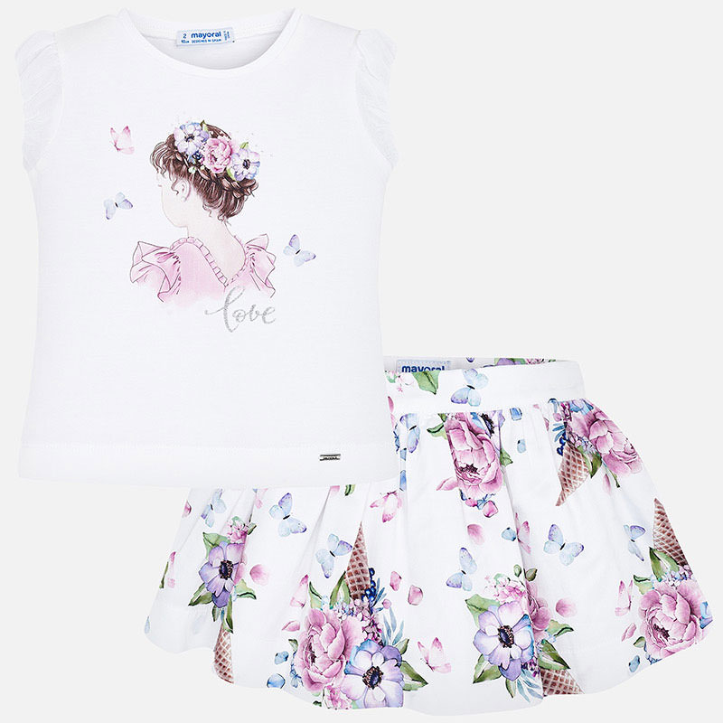 Conjunto de camiseta y falda a juego para niña.