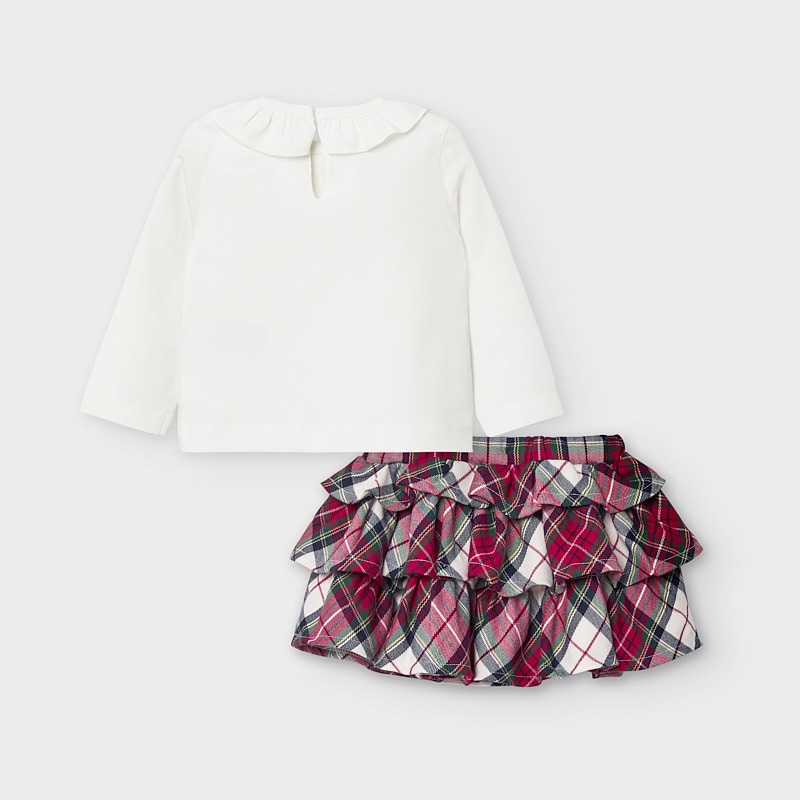 Conjunto de camiseta y falda a juego para bebé niña de 6 a 36 meses. Camiseta de manga larga para bebé niña. Cuello redondo con volante. Falda corta para bebé niña. Goma elástica regulable en la cintura para ajustar el talle.