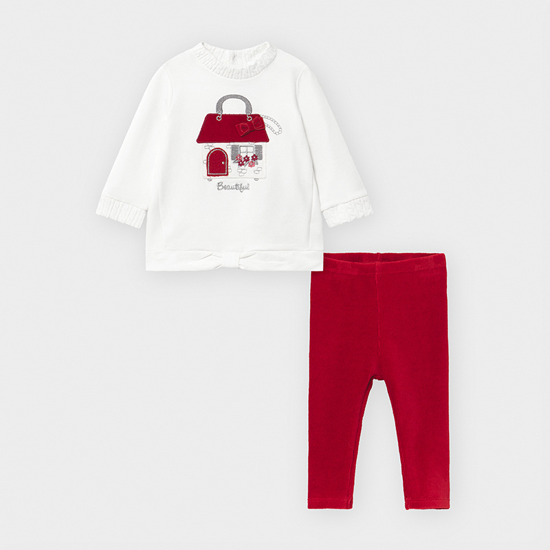 Conjunto para bebé niña de 12 a 36 meses de chaqueta y pantalón largo combinados. Suave tejido de algodón elástico.