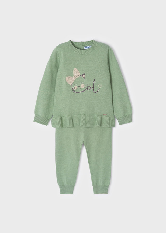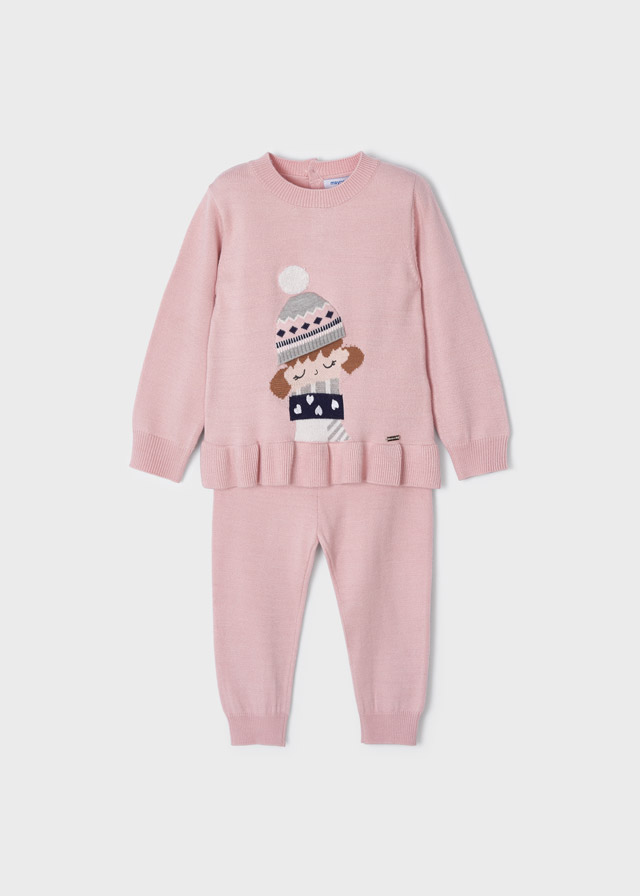 Camiseta de manga larga para bebé con pequeña abertura en la espalda. Pantalón para bebé. Goma elástica en la cintura para un mejor ajuste.