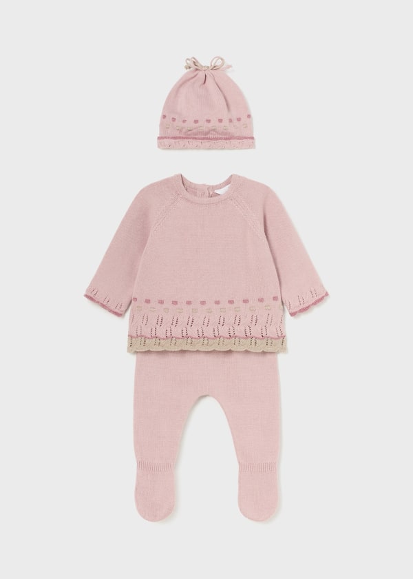 Conjunto polaina tricot con gorro entre 1-9 meses.