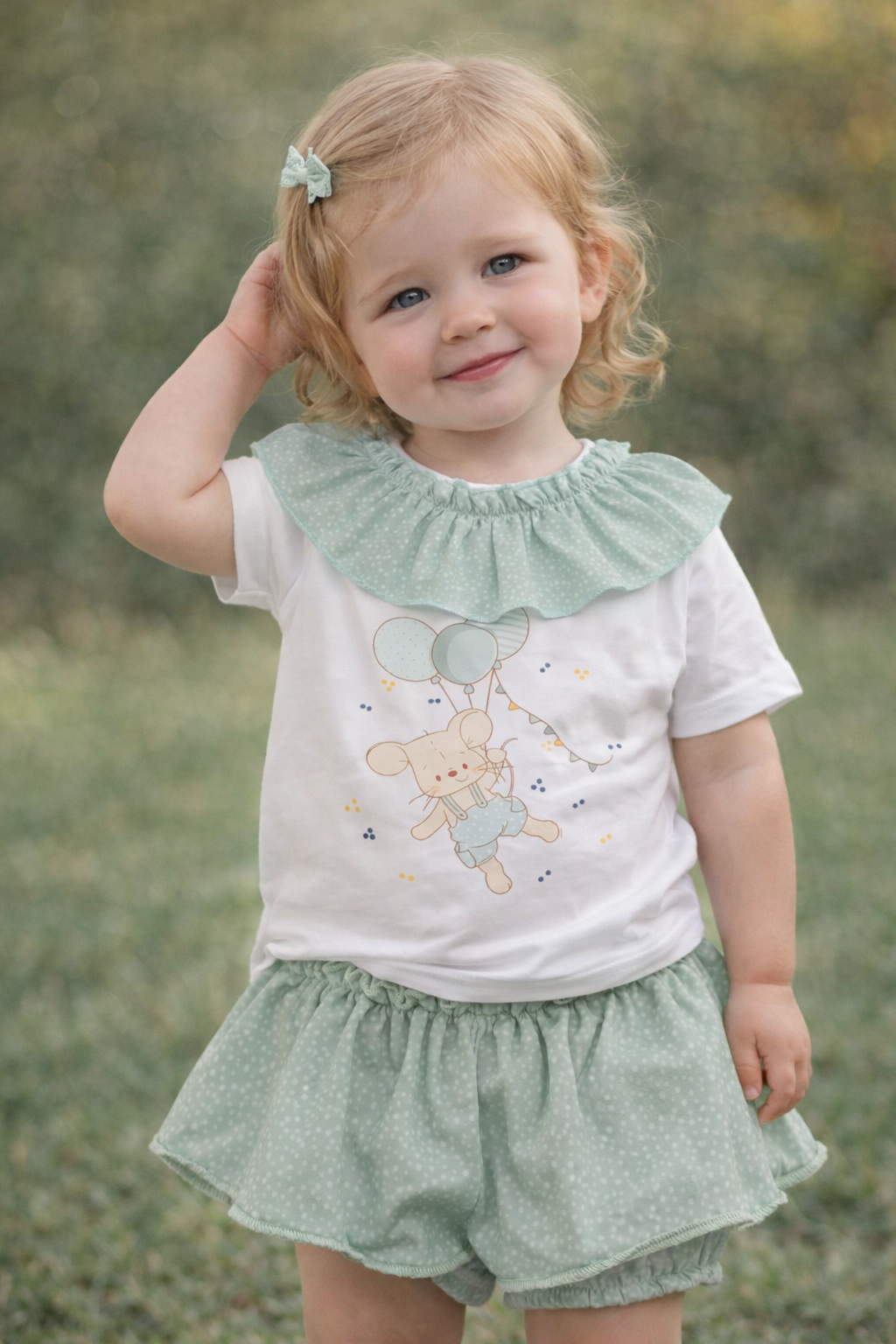 Conjunto ratón globos niña cuello volante entre 12-48 meses.