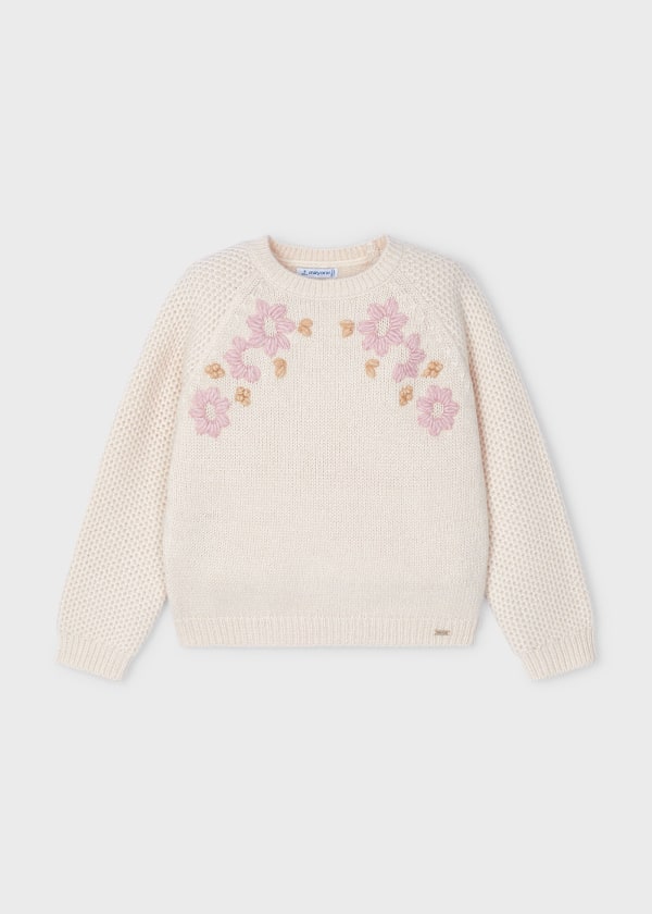 Jersey flores bordadas entre 3-9 años. Este jersey de flores para niña de Mayoral (Ref. 14-04354-083) es ideal para aportar calidez y estilo en los días de otoño e invierno. Con un diseño floral encantador y colores vivos, este jersey destaca por su suavidad y comodidad. Está confeccionado en un tejido de punto de alta calidad que proporciona un ajuste cómodo y permite libertad de movimiento. Perfecto para combinar con jeans o pantalones casuales, este jersey de Mayoral es una opción versátil para cualquier ocasión. Disponible en varias tallas para adaptarse a niñas de diferentes edades.