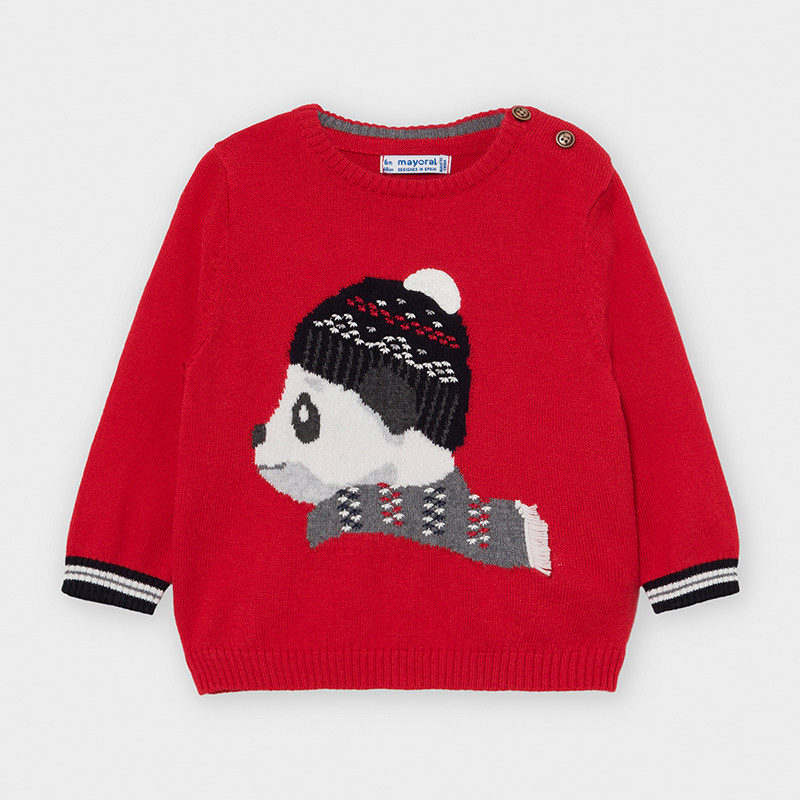 Jersey de manga larga para bebé niño de 12 a 36 meses. Cuello redondo. Cierre con botones en el hombro. Tejido de punto tricotosa fino de tacto suave y agradable. Elementos de adorno: bordados en la parte delantera.