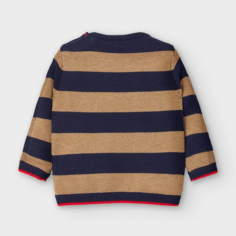 Jersey de rayas de manga larga para bebé niño de 12 a 36 meses. Cuello redondo. Cierre con botones en el cuello para facilitar el ajuste. Tejido de punto tricotosa fino de tacto suave y agradable. Motivo de rayas.