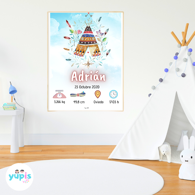 Lámina de nacimiento personalizada Tipi