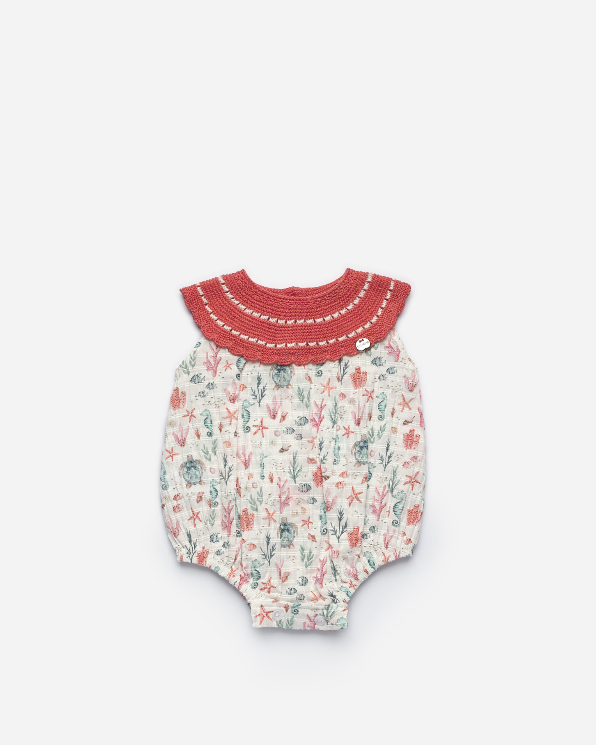 Pelele cuerpo punto resto en tela estampada caballitos de mar.