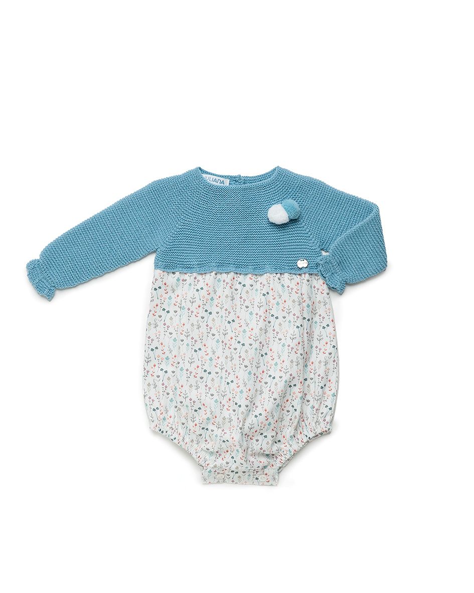 Pelele cuerpo punto ramitas 2 pompones entre 1-18 meses.