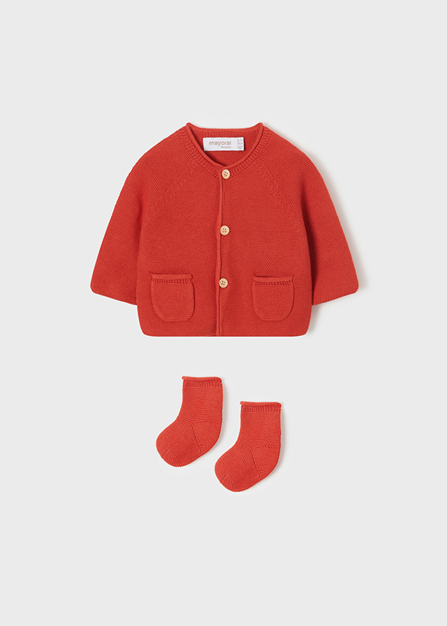 Rebeca larga y calcetines ECOFRIEND tricot recién nacido.