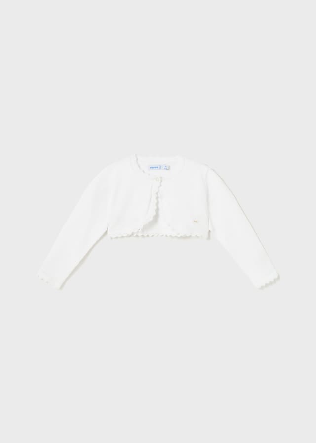 Prenda ECOFRIENDS, contiene algodón sostenible. Rebeca de manga larga para bebé. Cierre con un único botón. Tejido de punto tricotosa fino.