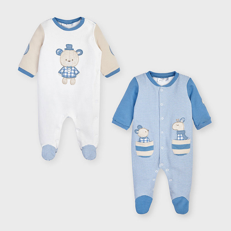 Set de dos pijamas interlock para recién nacido niño de 0 a 18 meses.