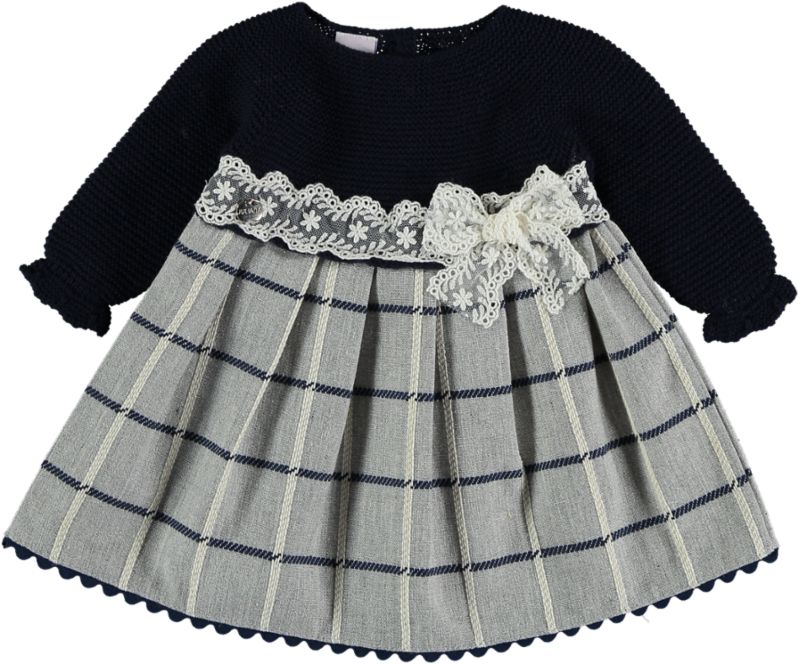 Vestido clásico de cuadros en tono marino y gris.