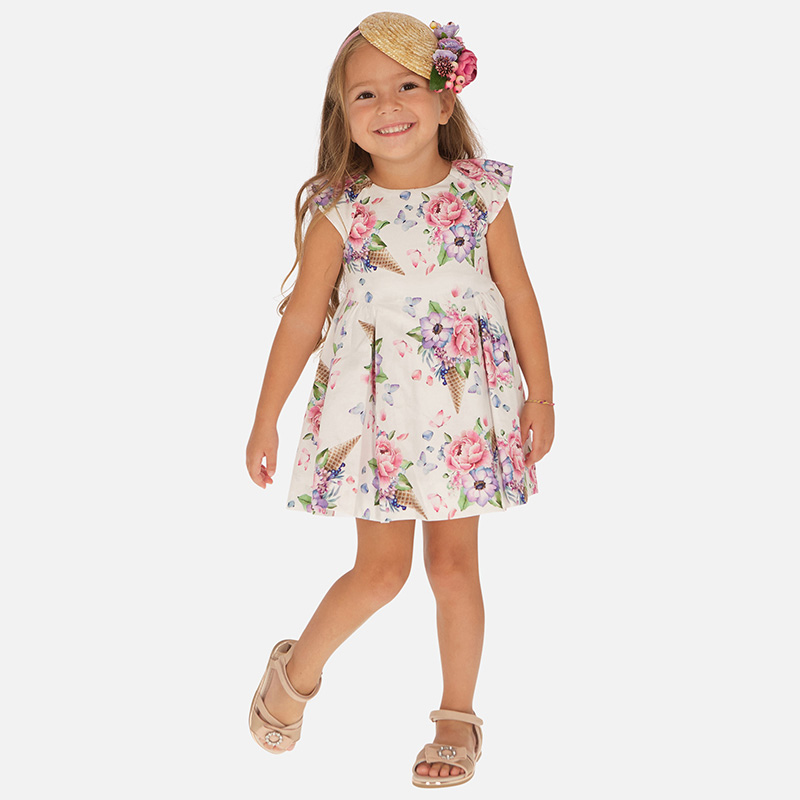 Vestido sin mangas para niña. Cuello redondo. Cierre con cremallera trasera invisible. Mezcla de tejidos combinados para lograr un diseño único y diferente.