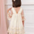 Vestido delicado y exquisito confeccionado en tul bordado con forro. Mangas francesas con volante en los puños. Corte en el pecho con rizo. Falda con rizo y vuelo. Bajo con volante. Apertura corte en pico la espalda . Un diseño bonito y romántico para lucir dulce en los momentos más especiales.