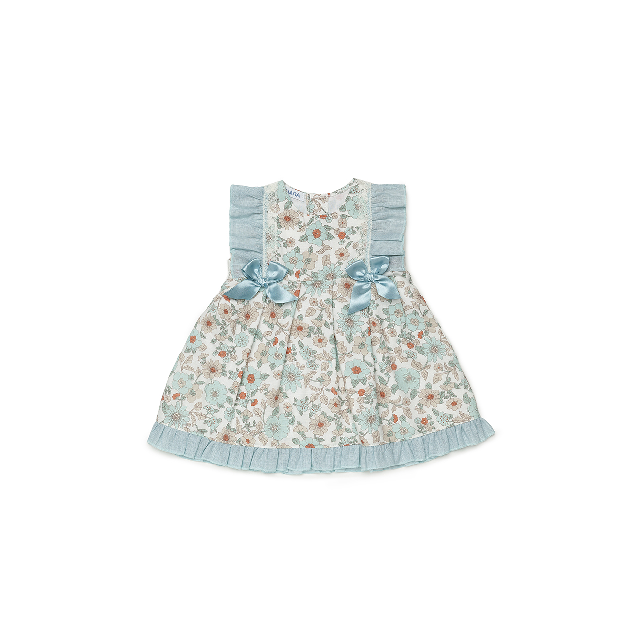 Vestido cortado cintura flores 2 puntillas entre 1-48 meses.