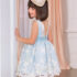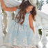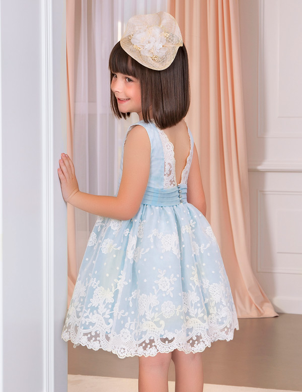 Delicado y exquisito vestido confeccionado en organza bordada con flores. Asimismo, la falda cuenta con tul cancán para dar mayor volumen. Cintura con fajín con rizo. Espalda con cierre con botones y cordón elástico. Un look distinguido para las ocasiones más especiales.