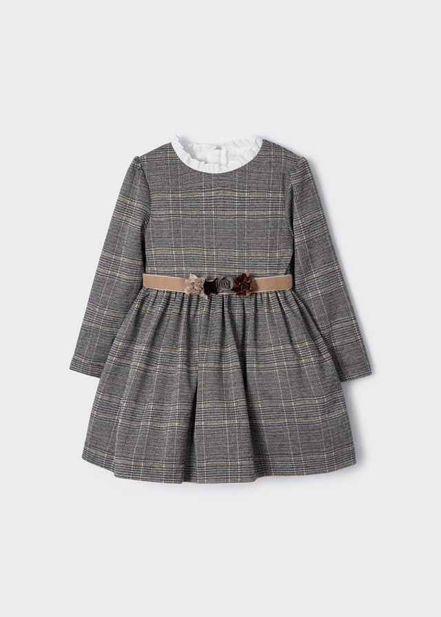 Original set de dos piezas para niña. Vestido de manga larga para niña. Cuello redondo con volante. Cierre con cremallera trasera invisible.