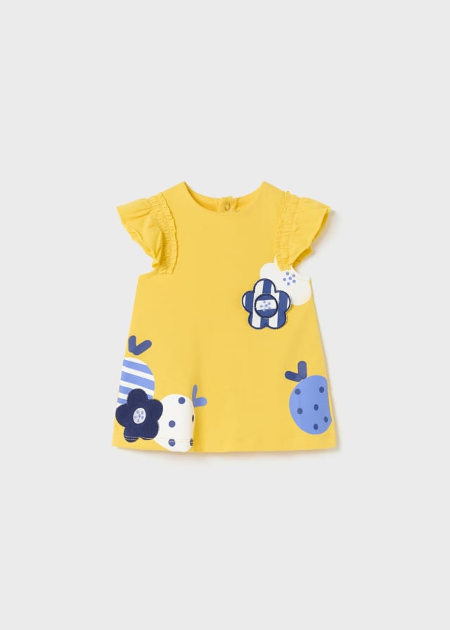 Prenda ECOFRIENDS, contiene algodón sostenible. Vestido sin mangas para recién nacido. Cierre con botones a presión en la parte posterior.
