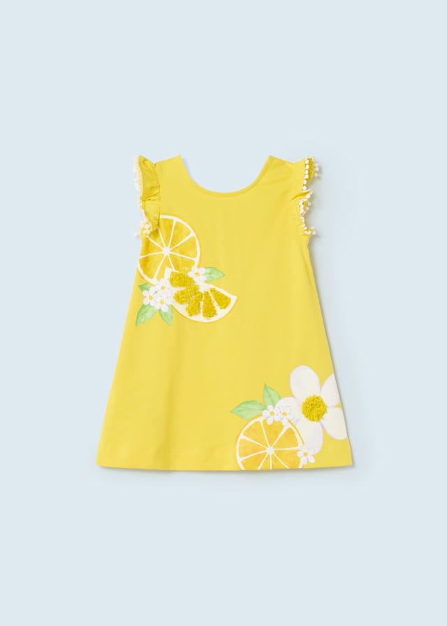 Prenda ECOFRIENDS, contiene algodón sostenible. Vestido sin mangas para bebé. Diseño estampado.