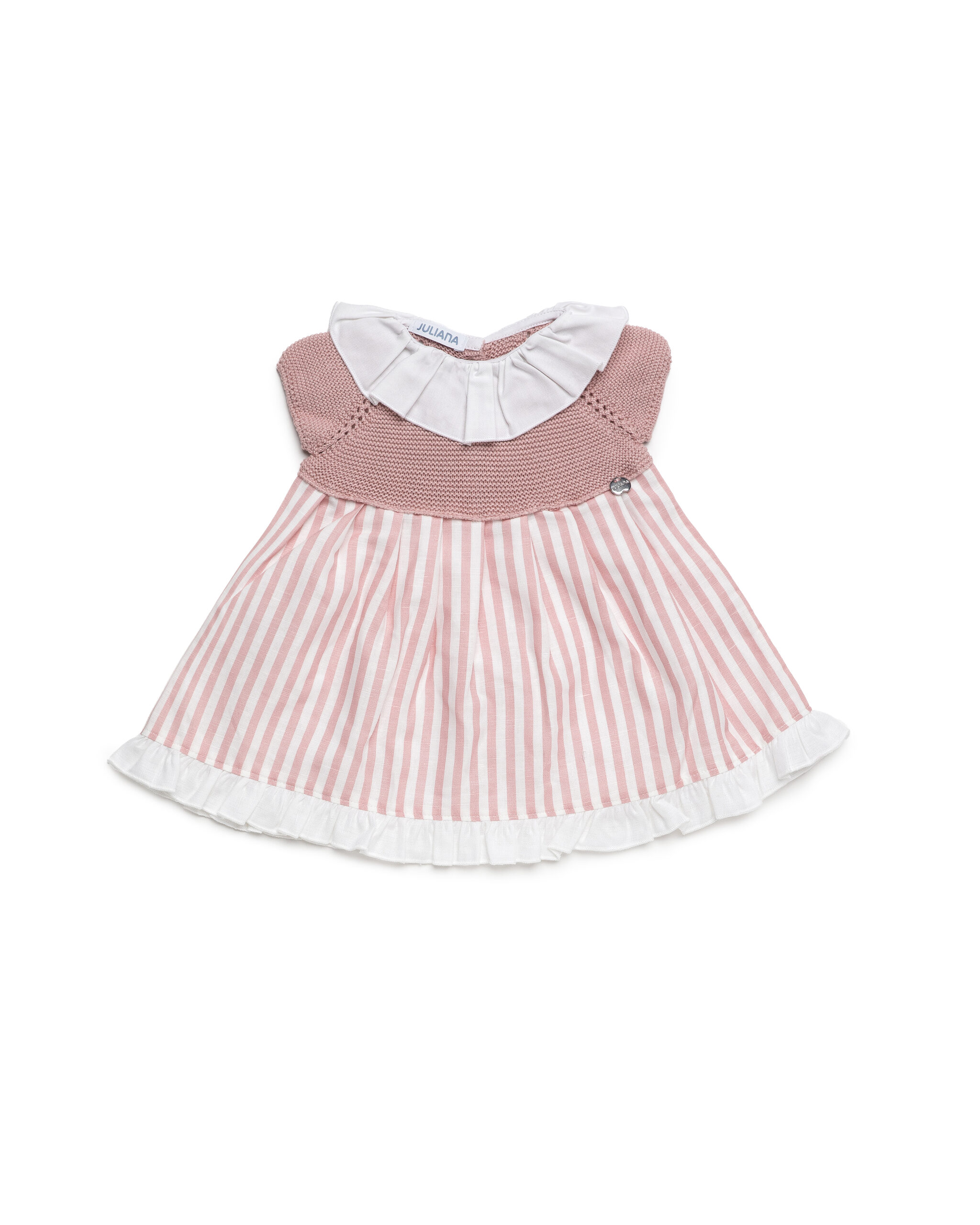 Vestido cuerpo punto tela rayada entre 3-24 meses.