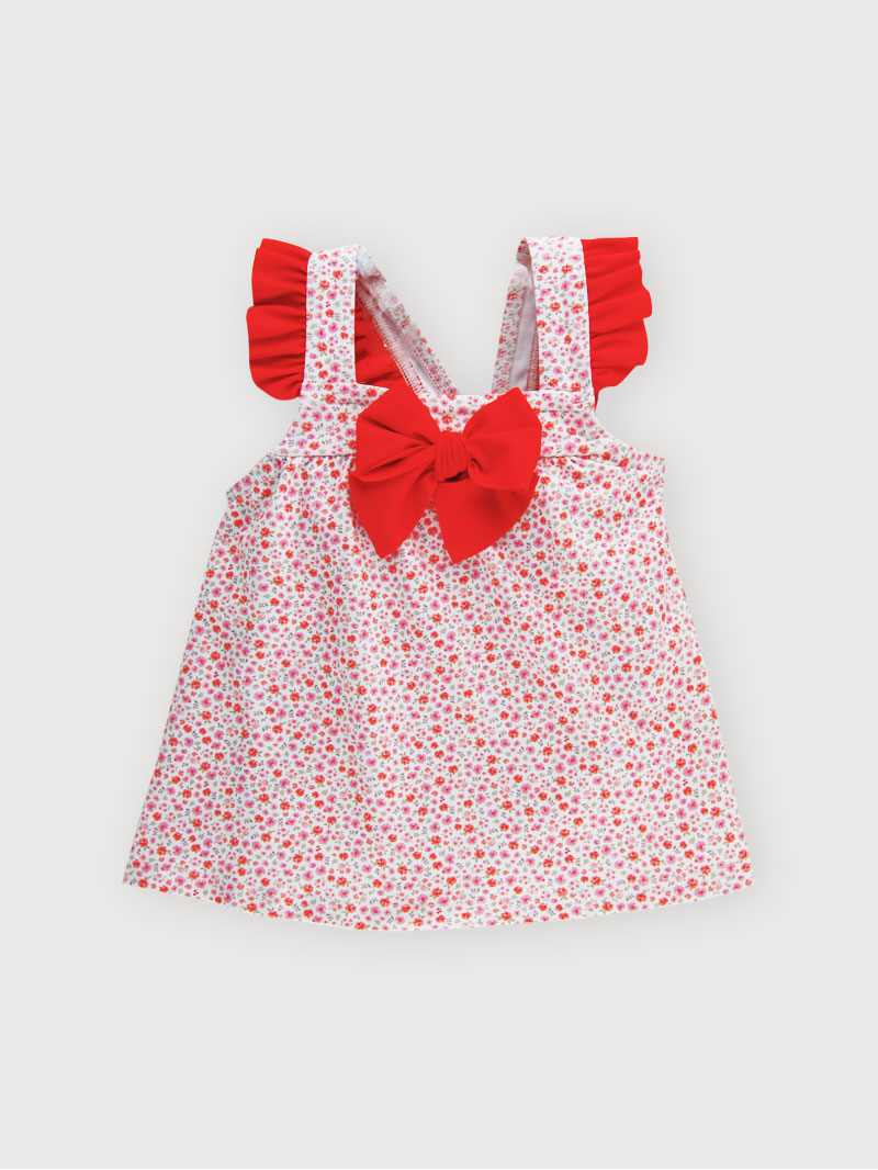 Vestido licra con volantes y lazo.